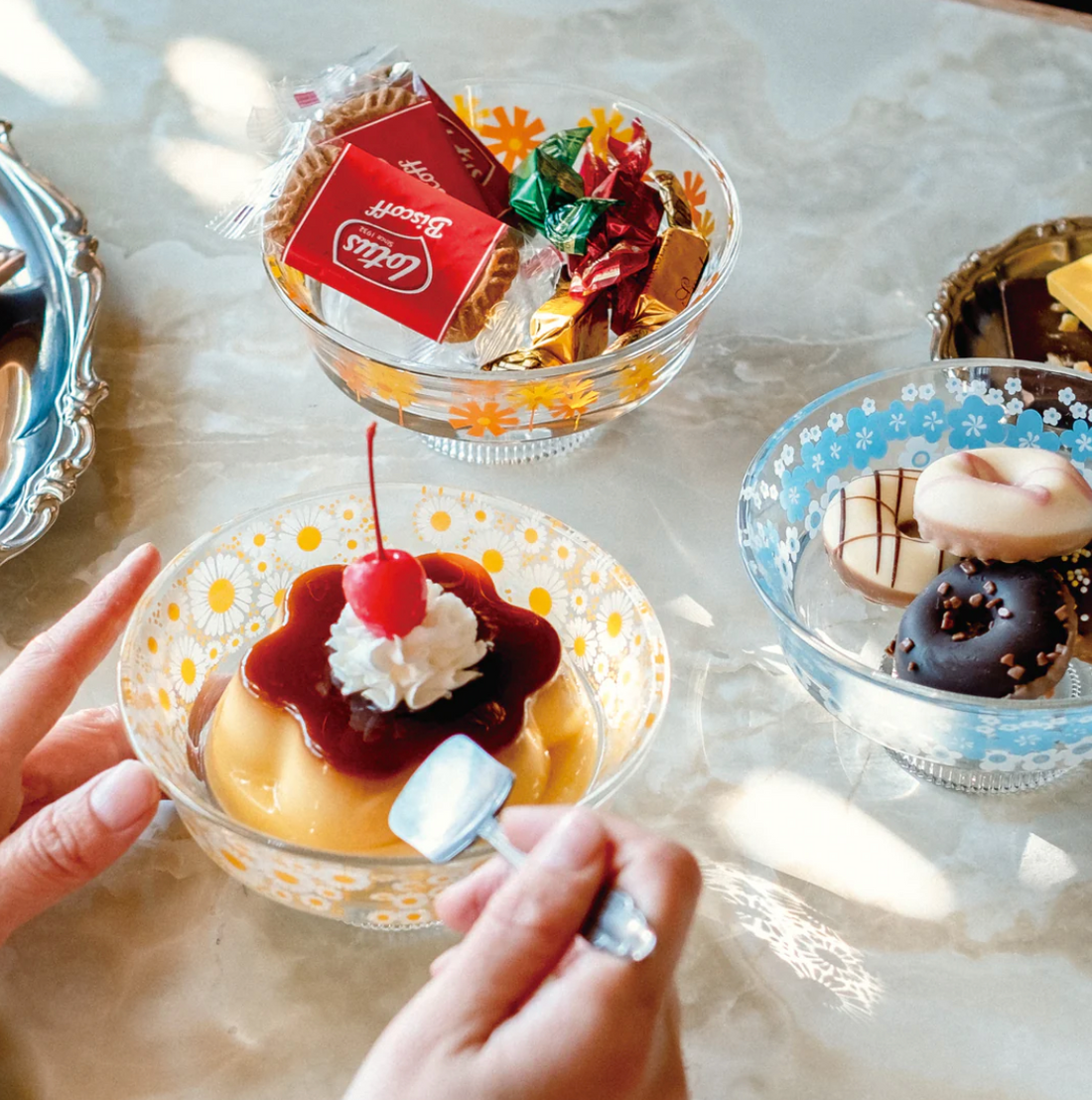 Enjoy a home cafe experience with Aderia Glass Retro. This stylish dessert cup features a nostalgic and retro-inspired leg sculpture that sparkles. Back in the Showa era, legged dishes were commonly seen and were a symbolic dish in restaurants and cafes. You can use it to serve parfaits or puddings, use it as a goblet for drinks like cream soda, or even use it as a container for cookies and candy. Also, try to find Adelia Retro's "hidden logo" to make yourself happy!