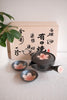 Packaged in a wooden box, this set includes a teapot with a built-in tea strainer and two teacups, making it an excellent choice for gifting.