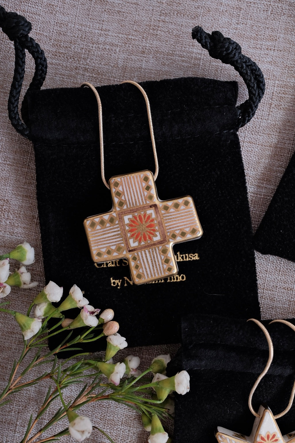 Cross - 3.5 x 3.5 x 0.5H cm for the pendant, 25cm for the necklace.