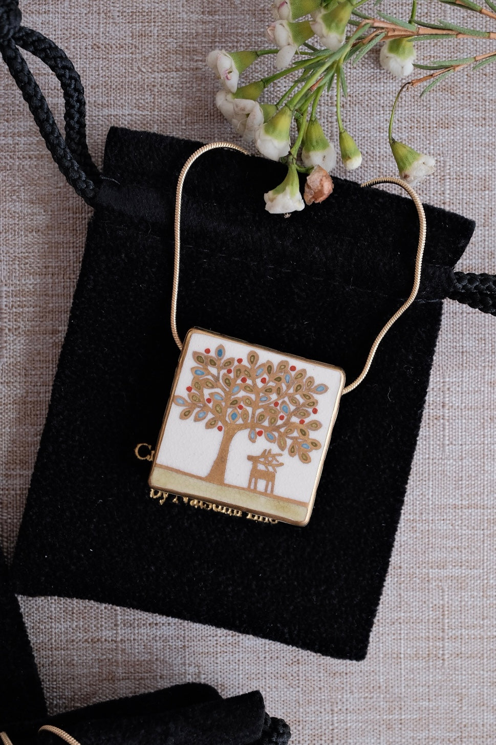 Square - 3 x 3 x 0.5H cm for the Pendant, 25cm for the necklace.