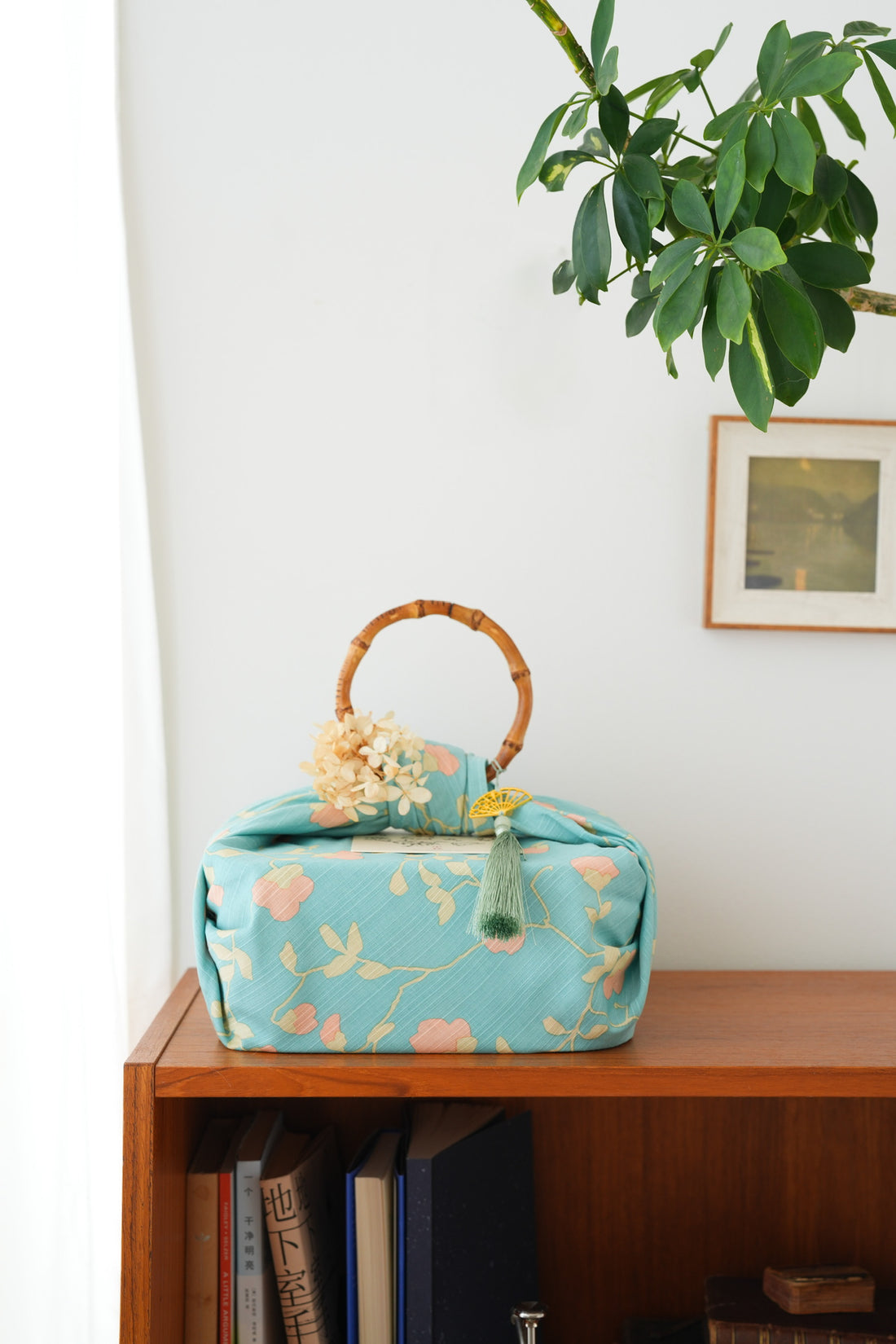 *The outer wrapping cloth (furoshiki) - 1 pc, reusable, it can later be used as a tablecloth, for picnics, or made into a tote bag together with the bamboo bracelet
