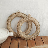 A warm and cozy pot laying with the warmth of natural materials. The donut-shaped pot mat is perfect for earthenware pots and pans.
