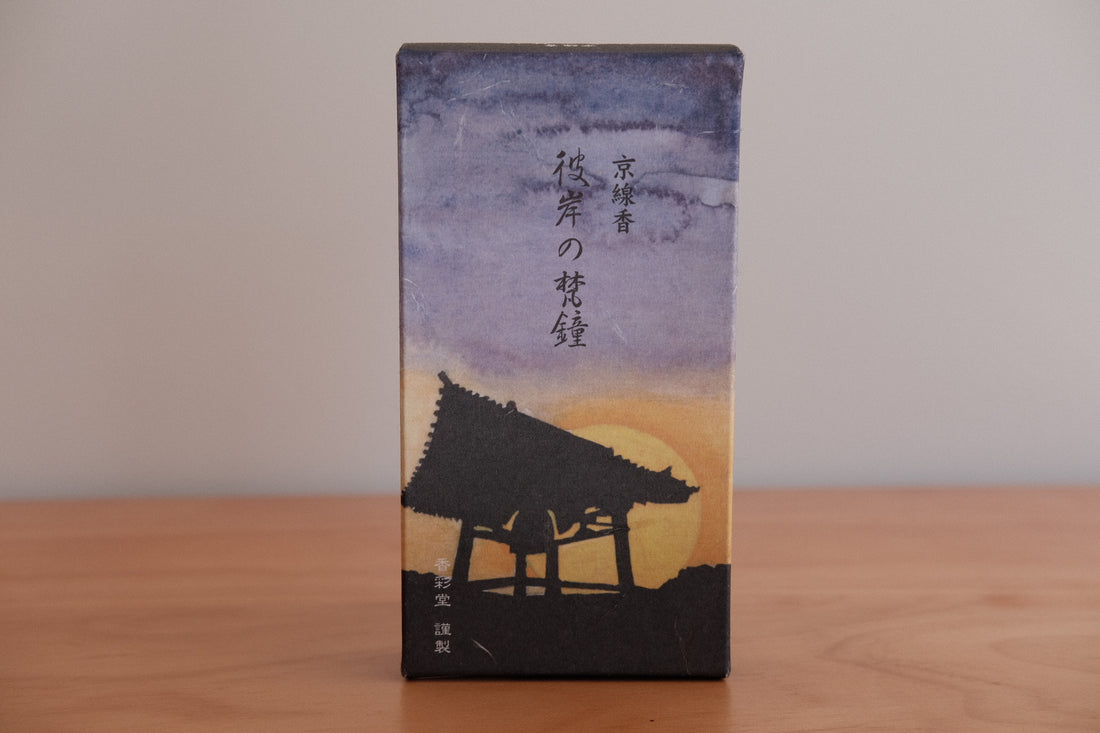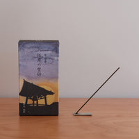 A Kyoto incense stick that leaves a quiet lingering sound like the tone of a Bonsho. A heavy scent that is a mixture of castoreum and musk based on agarwood.