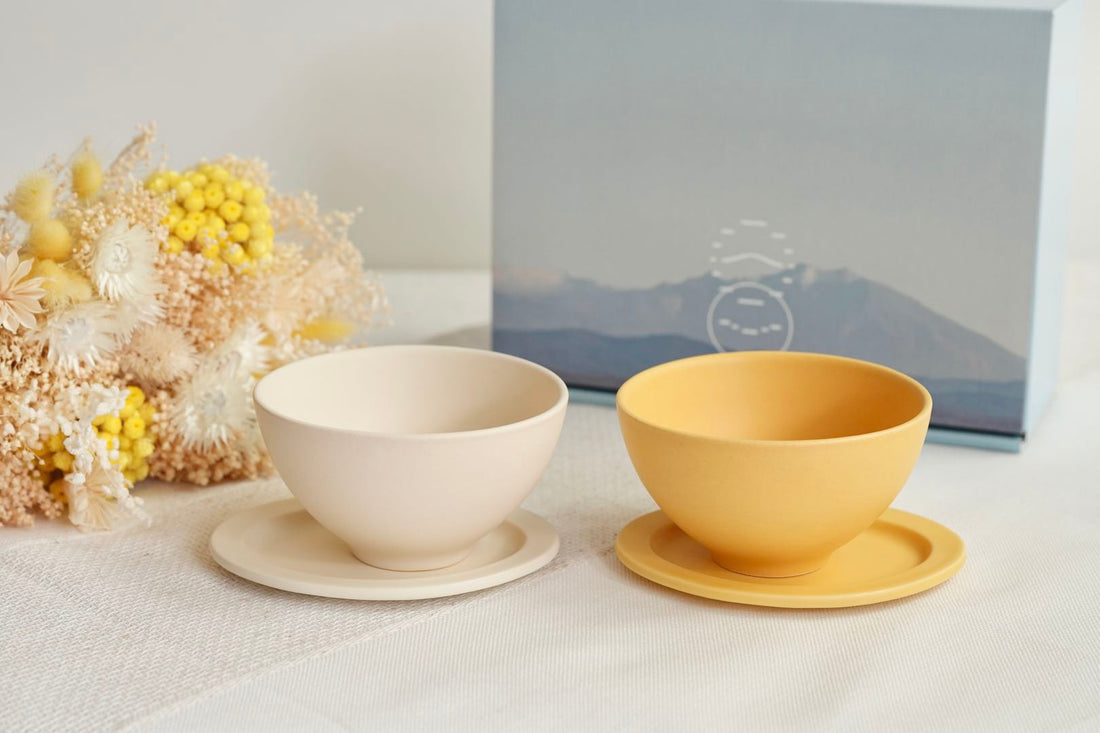 SAKUZAN Sara Gift B Set (2 Rice Bowls & 2 Small Oval Plates) - Cream x Yellow