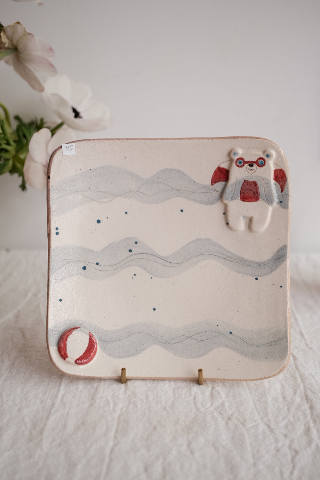 Tsubouchi Mayumi 坪内真弓 Bear Square Plate MT12 - Swimming Bear